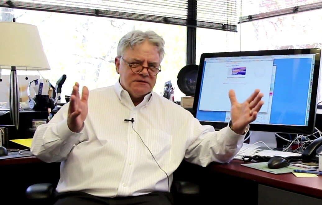 Systems Engineering Chief Bill Podgorski at the Harvard Smithsonian Center for Astrophysics with all seven packaged red-camera lenses developed by Nikon and planned for assembly on the Giant Magellan Telescope Large Earth Finder instrument.