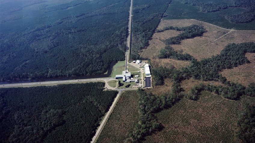 LIGO operates two detectors located 3000 km (1800 miles) apart: One in eastern Washington near Hanford, and the other near Livingston, Louisiana. Credit: LIGO/Caltech