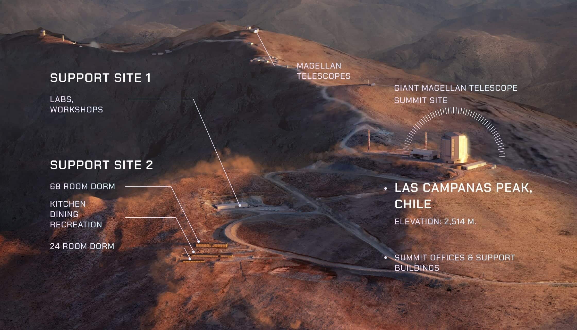 El desierto de Atacama en Chile es uno de los mejores lugares del planeta para explorar el espacio. Es un auténtico paraíso para los astrónomos por su gran altitud, sus cielos despejados, sus noches oscuras y su atmósfera estable. Por estas razones, la Carnegie Science, uno de los fundadores del Telescopio Magallanes Gigante, eligió el desierto de Atacama para instalar su reconocido Observatorio Las Campanas (LCO). El valor científico de este lugar está respaldado por cinco décadas de uso activo de telescopios, proporcionando excelentes condiciones para que los astrónomos capten los detalles más finos y obtengan excelentes datos de los objetos celestes más débiles.